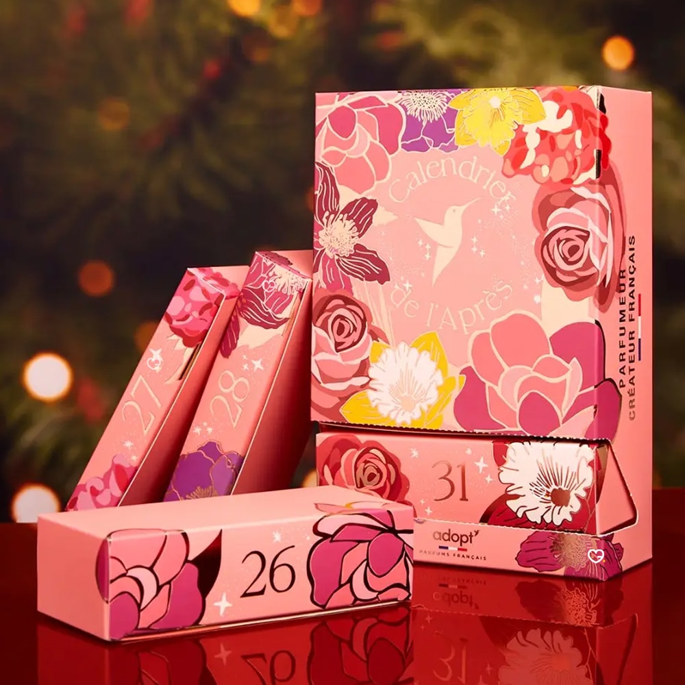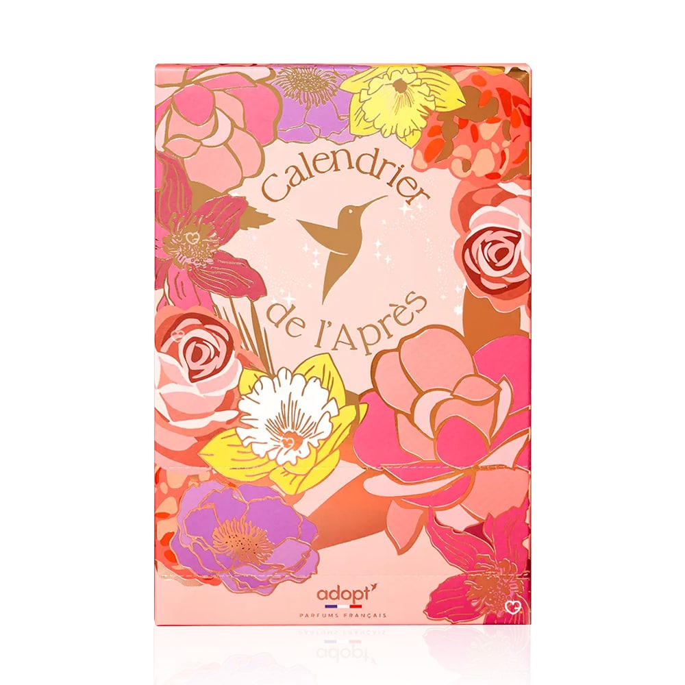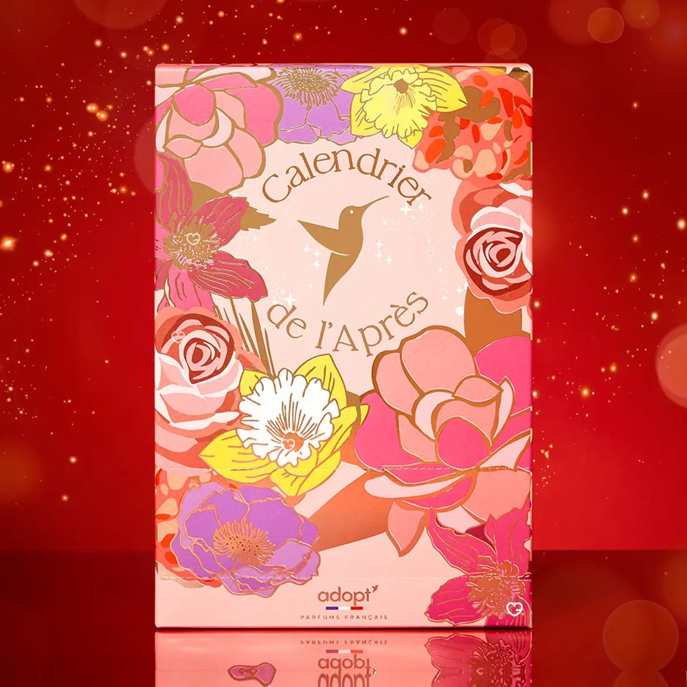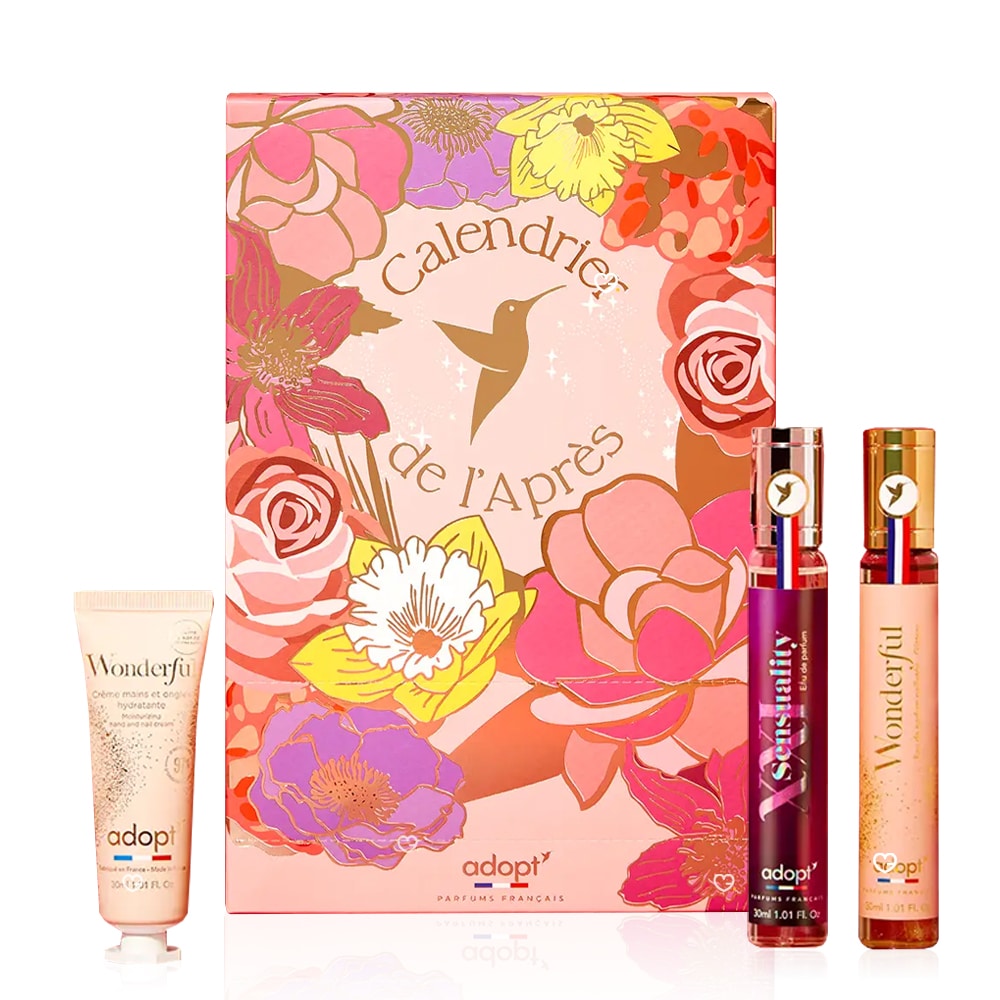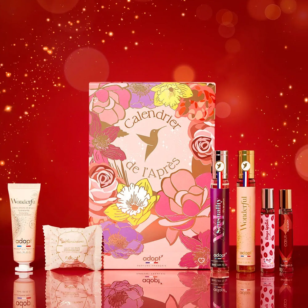 Calendrier de L’Après Adopt 2025 : Prolongez les fêtes de fin d’année en vous offrant 6 jours de plus de beauté et d’ambiance parfumées avec le calendrier de l’Après Adopt 2025 ! Un joli coffret inédit contenant pour vous offrir des parfums aux senteurs fraiches, pop et joyeuse ! mais aussi des soins beauté ! Un calendrier de l’Après beauté créé et fabriqué en France qui fait Pschiiit et qui sent bon ! Parfait comme cadeau pour mettre au pied du sapin ou se faire un décompte unique jusque la fin décembre ! Contenu et valeur de ce coffret ? Le calendrier de L’Après Adopt 2025 contient 6 eaux de parfums et soins de beauté pour une valeur totale estimée de 38,70 euros Au total : 4 eaux de parfums et 2 soins de beauté => Découvrez le contenu complet du calendrier dans l’onglet CONTENU DETAILLÉ Qui est la marque Adopt ? « Créateur de parfums depuis 40 ans, adopt développe une gamme de fragrances de qualité, uniques, addictives, accessibles à toutes et à tous à partir de 9.95€, exclusivement créées et fabriquées en France. Plus de 100 eaux de parfums joyeuses, féminines, masculines ou mixtes, fruitées, florales, boisées ou chyprées, qui répondent à votre humeur, à vos envies, à votre style, et à tous les moments de la journée. Avec adopt, c’est tout un univers de parfums aux ingrédients nobles et précieux qui s’ouvre à vous ! Pour prolonger l’expérience, adopt propose des rituels de soins végans, soins corps, soins visage, soins cheveux, aux formules gorgées d’ingrédients naturels. Et pourquoi pas opter pour un coffret parfumé, combinant parfums et soins coordonnés ? Craquez, et regardez : vous resplendissez ! Idées cadeaux pour faire ou se faire plaisir, best-sellers, parfums iconiques, nouveautés, visitez l’univers adopt, et rejoignez la French Fragrance Révolution ! » Autres versions disponibles ? Adopt propose cette année, en plus de son coffret de l’après, 4 versions de son calendrier de l’Avent parfums : : Le jardin du parfumeur : Calendrier de l’avent parfums (99,95 €) 24 eaux de parfum dont 2 fragrances inédites présentées en exclusivité 18 eaux de parfums 10ml; 6 eaux de parfums 30ml Les trésors olfactifs : Calendrier de l’avent parfums intense (149,95€) 24 eaux parfumées dans un coffret réutilisable 17 eaux de parfums 30ml et 7 eaux de parfum 100ml Le voyage du parfumeur : Calendrier de l’avent découverte (69,95€) 24 grandes eaux de parfums, des fragrances sophistiquées, fruitées ou gourmandes 20 eaux de parfums 10ml et 1 eaux de parfum 30ml Nouveauté ! Le Collector : Calendrier de l’Avent parfums homme (59,95€) 12 eaux de parfums 30ml Des accords pleins de caractère Code promotion Adopt : Code promotion : Bénéficiez de -20% avec le code promo NEW20 (nouveau utilisation / 1er commande) – Non valable sur le calendrier de l’avent adopt Avantage Adopt Parfums : Livraison gratuite dès 25€ d’achat Avantage produit adopt : 3 parfums achetés = le 4ème GRATUIT Retrouvez tous les calendriers de l’Avent en promotion . Date de sortie du Calendrier de l’Avent 2025 : Le calendrier de l’Avent Adopt sera disponible sur le site adopt.fr
