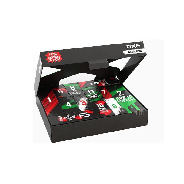 Calendrier de l’Avent AXE 12 Jours : Le coffret calendrier de l’Avent AXE est composé de 12 produits incontournables , c’est le cadeau parfait pour les ados, les frères, les papas et tous les hommes Ce coffret 2025 contient 12 cadeaux incroyables à découvrir ! Retrouve 3 de tes parfums AXE préférés : Black, Dark Temptation et Ice Chill disponibles en formats déodorant bodyspray et gel douche Découvre également dans ce coffret 6 produits et accessoires beauté , dont un peigne noir, une brosse à dents noire et des lingettes en tissu pour le visage Composé à 92 % d’ingrédients d’ origine naturelle , le gel douche AXE te permet de rester frais et de sentir irrésistiblement bon toute la journée => Découvrez le contenu complet du calendrier dans l’onglet CONTENU DETAILLÉ Quelle est la valeur du contenu de ce calendrier ? Le montant des produits (déodorant; gel douche; brosse..) contenus dans ce calendrier de l’avent beauté pour homme a une valeur non communiquée Date de sortie du Calendrier de l’Avent 2025 : Le calendrier de l’Avent Axe est disponible