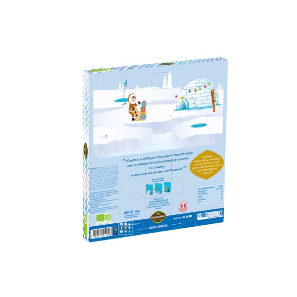 Calendrier de l’avent Belledonne – Chocolat au lait BIO 2025 : Un joli calendrier de l’avent chocolat bio au décor féerique et gourmand qui invite les enfants à entrer dans la magie de Noël, découvrez 125g de chocolat bio et équitable . Un coffret gourmand réalisé par Belle dans lequel,vous ne retrouverez que du chocolat au lait bio à l’intérieur pour le plus grand plaisir des plus petits. Ses petits plus… : au dos, vos enfants pourront découper et compléter un plateau de jeu sur les animaux du grand froid ! => Découvrez le contenu complet du calendrier dans l’onglet CONTENU DETAILLÉ Plus de calendrier dans le même thème : Vous souhaitez voir d’autres calendriers avec des chocolats au lait ? Retrouvez ici tous les calendriers de l’avent Chocolat au Lait Code promotion Bienmanger : Code promotion :aucun code promo disponible pour le moment Livraison gratuite dès 85 euros d’achat Retrouvez tous les calendriers de l’Avent en promotion . Autre versions de ce calendrier : Ce calendrier est aussi disponible en version chocolat noir : Calendrier Belledonne Chocolat noir