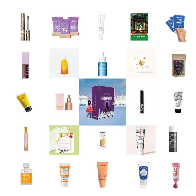 Calendrier de l’Avent Cosmopolitan 2025 Prenez soin de vous avec le nouveau calendrier de l’Avent Cosmopolitan 2025 ! Une 1ère édition spéciale avec 24 produits de beauté multimarque ! Au travers vos marques de cosmétique favorites telles que Fragonard; Powder; Technic ou encore Cheerz compte jusque Noël avec des soins visage; corps; capillaire sans oublier du maquillage et des surprises lifestyle. Intitulé « Sublime pour l’hiver », ce calendrier de l’Avent beauté complet sera parfait pour accompagné les femmes et jeunes filles dans leur routine beauté au quotidien. Contenu et valeur du calendrier Cosmopolitan ? Le calendrier de l’Avent Cosmopolitan 2025 contient 24 produits multimarque pour la beauté soins peau et cheveux; maquillage et accessoires lifestyle pour une valeur total de 337 euros Vous retrouvez de marques renommées telles que Adopt Parfums; Paula’s Choice ou encore Fragonard et même les chocolats Monbana Au total ce calendrier contient : 6 soins corps et cheveux (crème; shampoing; spay..) 9 soins visage (gommage; masque; exfoliant..) 5 produits maquillage / parfum ((mascara; rouge à lèvres; vernis..) 4 accessoires lifestyle (chocolat; pins..) => Découvrez le contenu complet du calendrier dans l’onglet CONTENU DETAILLÉ Autres versions disponibles ? Vous aimez le calendrier de l’Avent Cosmopolitan ? Alors vous aimerez la version Marie Claire : En promo (-10€) : Calendrier de l’Avent Cosmopolitan 2025 – 69,99€ / Valeur : 337€ : 24 produits Calendrier de l’Avent Marie-Claire – 69,99€ / Valeur 490€ : 24 produits Code promotion Cosmopolitan : Offre de lancement nouveauté : Bénéficiez de -10€ à l’achat du calendrier de l’avent Cosmopolitan avec le code COSMO10 Avantage My Beauty Factory : Livraison offerte – pas besoin de code promo Retrouvez tous les calendriers de l’Avent en promotion . Date de sortie du Calendrier de l’Avent 2025 : Le calendrier de l’Avent Cosmopolitan sera disponible sur le site mybeautyfactory.com