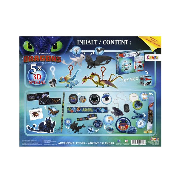 Le calendrier de l’avent Craze Dragon : Mais que se cache-t-il donc derrière toutes ces portes? Chaque jour, le monde de l’île aux dragons s’ouvre un peu plus à vous grâce au calendrier de l’Avent enfant DRAGONS de CRAZE. Ce calendrier pour garcons & filles raccourcit le temps d’attente avant Noël pour les petits dompteurs de dragons grâce 24 accessoires et figurines. Les fans de How to Train Your Dragon : Le Monde caché peuvent se réjouir de figurines exclusives en 3D telles que des porte-clés, des mini-bandes originales avec de superbes imprimés de hicks & co., des boutons, des balles rebondissantes, des autocollants et bien plus encore Un calendrier qui va plaire à votre enfant , c’est sûr ! => Découvrez le contenu complet du calendrier dans l’onglet SPOILER ! Vous aimerez aussi : Découvrez d’autres idées de calendrier de l’Avent pour Enfant