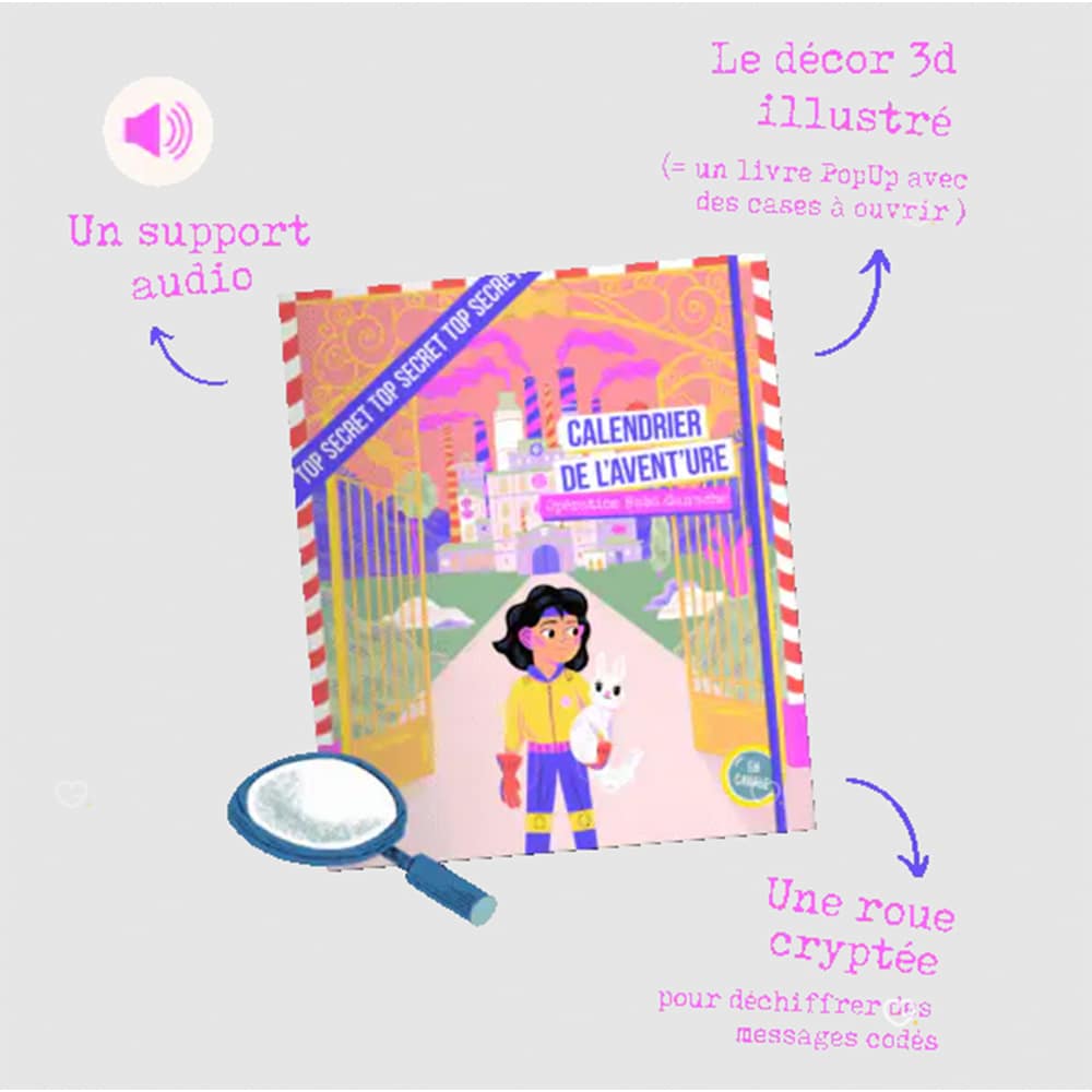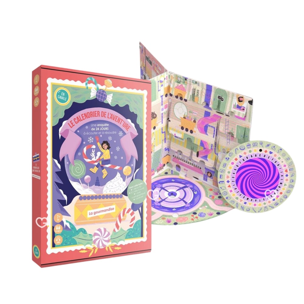 Calendrier de l’Avent En Cavale 2025 : Vivez des moments de partage et de découverte avec En Cavale, le calendrier de l’Avent enfant avec 24 jours d’aventures et d’énigmes à résoudre seul ou en famille dès 7 ans Votre mission : L’Agent A.S.T.R.A.U.X. est contactée pour mener l’Opération Baba Ganache . Une merveilleuse aventure en famille au coeur d’une fabrique gourmande. Ensemble vous croiserez la route de la confrérie des confituriers, ou encore d’un certain Guy Mauve, sur fond d’ingrédients mystérieux… Une aventure aussi malicieuse que délicieuse, sans calorie, et bien-sûr TOP SECRÈTE de l’Académie des Enfants Espions ! Comment fonctionne ce calendrier de l’Avent ludique : ENVOI DU CALENDRIER : Votre enfant reçoit son calendrier directement dans la boîte aux lettres DEBUT DE L’AVENTURE : Le 1er décembre, l’aventure commence. Votre enfant écoute le 1er épisode et découvre la scène de l’enquête. L’ENQUÊTE AVANCE : Chaque jour s’instaure le rituel du Calendrier de l’Avent’ure : l’enfant va découvrir une nouvelle énigme à résoudre pour faire avancer l’histoire BRAVO : 24 décembre : BRAVO, grâce à ses qualités d’agent secret votre enfant a élucidé les ultimes mystères de cette merveilleuse aventure. Contenu de ce coffret : Une histoire audio en 24 épisodes + 3 prologues Un livre décor pop up Du matériel d’enquête Une surprise le 24 décembre => Découvrez le contenu complet du calendrier dans l’onglet CONTENU DETAILLÉ Autre version disponible : le calendrier de l’Avent En Cavale est disponible en plusieurs versions : Calendrier de l’Avent’Ure « En Haute Montagne » (34,90€) Calendrier de l’Avent’Ure « A bord du train » (34,90€) Retrouvez tous les calendriers En Cavale Les + de ce calendrier ? Derrière ce calendrier de l’Avent original se trouve En Cavale. Une entreprise lyonnaise spécialisée dans la réalisation de jeux nouvelle génération pour enfants de 7 à 12 ans. Les jeux sont fabriqués dans des matériaux éco-responsables Issus de forêts certifiées FSC et PEFC Avec des objets pensés pour la réutilisation ou le recyclage Le Calendrier de l’Avent’Ure est fabriqué en France à 100%. Les points fort du calendrier : Rituel quotidien en famille Intéractif et sans écran Histoire audio et matériel à manipuler A qui s’adresse le calendrier En Cavale ? Original, ludique et distrayant, le calendrier de l’Avent enfant En cavale s’adresse à tous les enfants dès 6 ans qui souhaitent un décompte sous le thème de la découverte, d’énigmes et de réflexion. Jeune fille ou garçon partent à l’aventure pour résoudre une enquête mystérieuse. Bien sûr, des indices sont divulgués chaque jour pour les aider à résoudre ce mystère, mais pour cela il faudra résoudre une énigme par jour . Accompagné des parents , c’est un Avent convivial, rempli de moment de partage à plusieurs qui vous attend. Alors, prêt pour l’Avent’ure ? L’objectif ? Faire rêver et imaginer les enfants le plus longtemps possible, sans aucun écran… Où acheter ce calendrier au meilleur prix : Comparer et acheter le calendrier de l’Avent En Cavale au meilleur prix sur : Amazon Fnac Code promotion : Code promotion : aucun code disponible pour le moment Retrouvez ici tous les calendriers de l’avent en promotion Informations pratiques : Date de sortie : Le calendrier de l’Avent pour enfant en Cavale est disponible sur le site en-cavale dès fin septembre 2025 Fabrication Française : produit conçut et imprimé en France Livraison : Frais de port offert dès 60 euros // 3 euros pour le calendrier