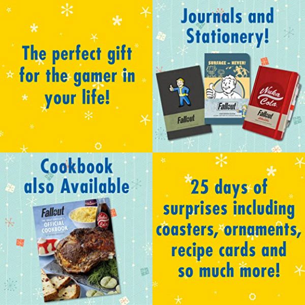 Le calendrier de l’avent Fallout: The Official Vault Dweller’s contient : (édition en Anglais) Collectionnez un coffre-fort de surprises : ce calendrier de l’Avent regorge de souvenirs, notamment une prise pop, un bouton en étain et un sous-verre. Vous découvrirez également des ornements en papier de haute qualité, des fiches de recettes et d’autres souvenirs amusants inspirés du monde de Fallout. Un cadeau que les joueurs de la célèbre série vont adorer : si vous cherchez un cadeau unique pour le joueur de votre vie, Fallout: The Official Vault Dweller’s Advent Calendar ravira à coup sûr les fans. => Découvrez le contenu complet du calendrier dans l’onglet CONTENU DETAILLÉ ! Autres versions disponibles ? Ce modèle de calendrier de l’Avent existe en différentes versions : Calendrier de l’Avent Friends: The Official Advent Calendar Calendrier de l’Avent Fallout: The Official Vault Dweller’s Calendrier de l’Avent L’Etrange Noël de monsieur Jack Calendrier de l’Avent Marvel The Official Advent Calendar Calendrier de l’Avent The Official Batman advent Calendar Calendrier de l’Avent Star Wars – The Galactic Advent Calendar Calendrier de l’Avent Harry Potter – Holiday Magic Advent Calendar