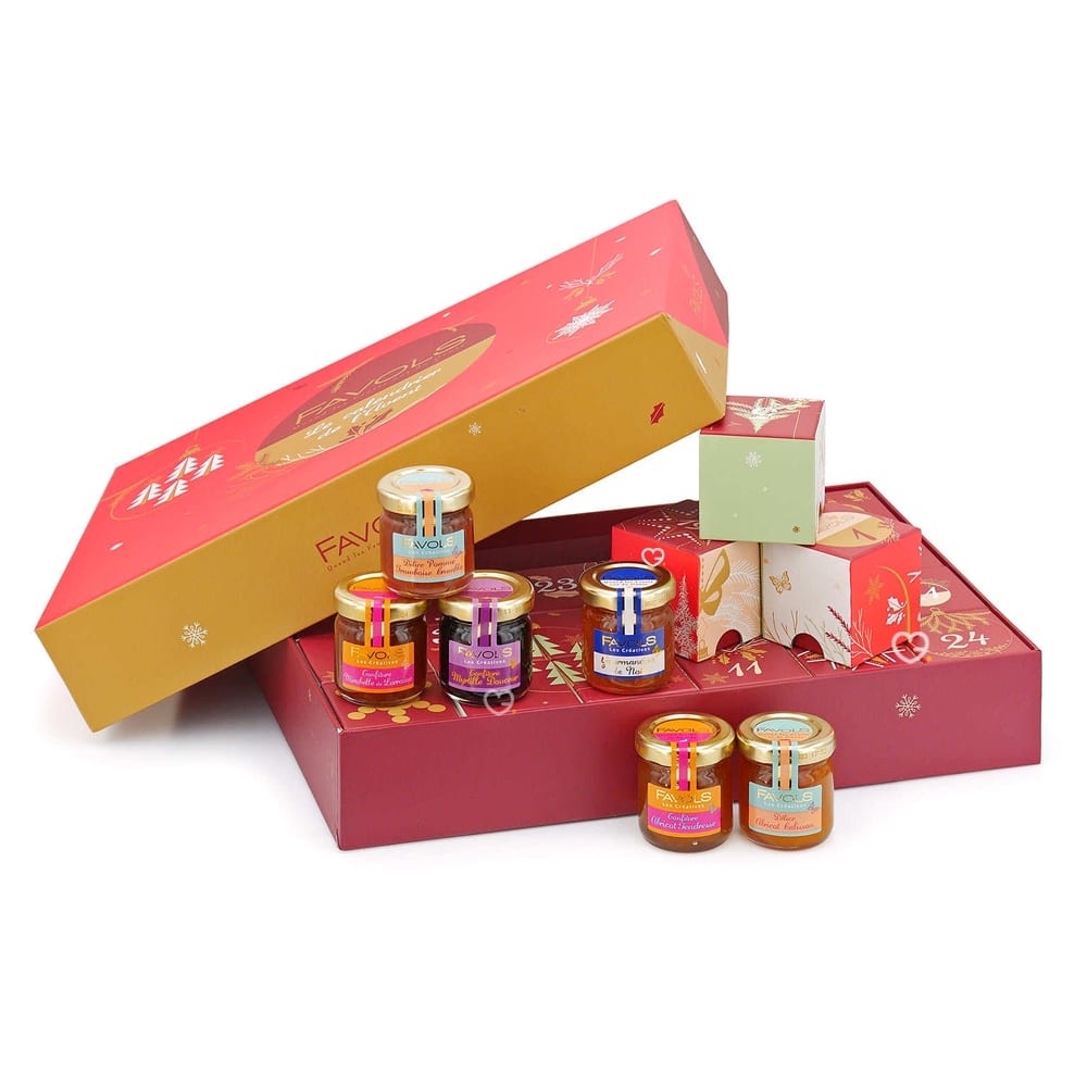 Calendrier de l’avent Favols 2025 : Avis aux gourmands amateurs de déjeuner et gouter haut en saveur ! Avec ce calendrier de l’avent confiture , éveiller vos matins et vos papilles ! Et pour cause, découvrez chaque jour durant la période de l’avent 1 pot de confiture de 42g chacun de différentes saveurs. Les saveurs et recettes à découvrir : Abricot; myrtille, ou encore pétale de rose et 4 fruits sont quelques-unes des surprises gourmandes que ce calendrier vous dévoilera. Fruits rouges : Confiture de fraise; Framboise biscuit rose .. Fruits jaunes et oranges : Confiture d’abricot; Mandarine nougat .. Parfums gourmands : Poire spéculoos; Confit de pétales de rose .. => Découvrez le contenu complet du calendrier dans l’onglet CONTENU DETAILLÉ Code promotion Favols : Aucun code promo n’est disponible sur ce calendrier de l’Avent pour l’instant Retrouvez tous les calendriers de l’Avent en promotion . Informations pratiques : Date de sortie : Le calendrier avent confitures Favols est disponible sur le site bienmanger.com fin septembre 2025 Frais de livraison : à partir de 5,95€ Livraison chronofresh pour aliment frais Délais de livraison : 3 à 7 jours