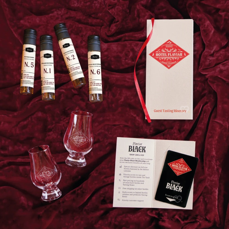 Calendrier de l’avent Flaviar 2025 : Pour la seconde année nous avons décidé de présenter le magnifique calendrier de l’Avent Flaviar. S’il est vrai que son design et son univers ne laisse pas indifférents, c’est surtout par son approche et son contenu que ce calendrier attise toute la convoitise. En effet, à l’intérieur de ce coffret vous trouverez des whisky venus du monde entier, une sélection premium allant du bourbon et seigle , à l’ écossais et irlandais , jusqu’au japonais et australien – et bien plus encore. Accompagné d’un livret de note, deux verres ainsi qu’un kit de dégustation, ce calendrier de l’Avent Whisky réunit tout ce qu’un amateur de « whiskey » comme ils l’appellent apprécient. Alors prêt pour une dégustation ? Contenu et valeur de ce calendrier de l’Avent ? Le calendrier de l’avent whisky crée par Flaviar contient 24 flacons de whisky et des accessoires pour une valeur totale non communiquée. Voici le résumé de ce que contient ce sublime coffret. 24 flacons de 50 ml en PET recyclable contenant des whiskies de renommée mondiale 2 verres Glencairn exclusifs et à collectionner Un livret de dégustation interactif avec des notes de dégustation pour chaque échantillon Adhésion GRATUITE d’un an à Flaviar Black Explorez les territoires gustatifs de 11 pays différents Plongez dans le meilleur des whiskies écossais single malt , des élégants malts français , des meilleurs bourbons , des étoiles montantes d’Allemagne et de Belgique et de beaux exemples de vins du Sud . Whisky Hémisphère Dont 12 Whisky primés => Découvrez le contenu complet et détaillé du calendrier dans l’onglet CONTENU DETAILLÉ Qui se cache derrière la marque Flaviar ? Flaviar est une bande de passionnés de spiritueux, inspirés par la culture, la riche histoire et l’art de la distillation. Ils fouillent le monde des spiritueux à la recherche des expressions les plus fines, les plus rares et les plus uniques. Leur devise, « vous êtes ce que vous buvez, la diversité et la qualité comptent et tout cela doit certainement être apprécié avec style et en bonne compagnie. » Leur vision est simple et positive . Leur constat est qu’il existe +15 000 spiritueux différents dans le monde et que année des centaines de distilleries artisanales ouvrent leurs portes. Malheureusement trop souvent, celles-ci sont inaccessibles car sous représentés, qui plus est dans les bars où l’on peut espérer trouver 10-15 bouteilles différentes maximum. Fort de ce constat, Flaviar prône le fait que tout le monde mérite une place sous les projecteurs et ainsi ils luttent pour l’égalité des chances pour les producteurs d’atteindre des individus comme vous. Code promotion Flaviar : Code promo Flaviar : coupon exclusif de -10 euros supplémentaire avec le code YUSVZO -8% de remises à partir de 2 calendriers achetés Retrouvez ici tous les calendriers de l’avent en promotion Où acheter ce coffret ? Le calendrier de l’Avent Flaviar sera disponible sur le site www.flaviar.com La livraison en France possible (Flat fee : 13,99 euros)
