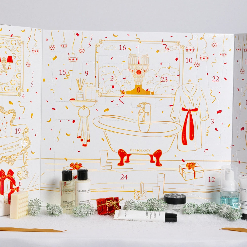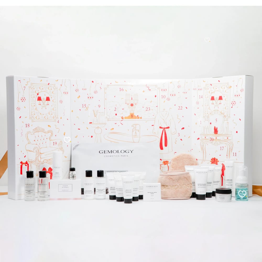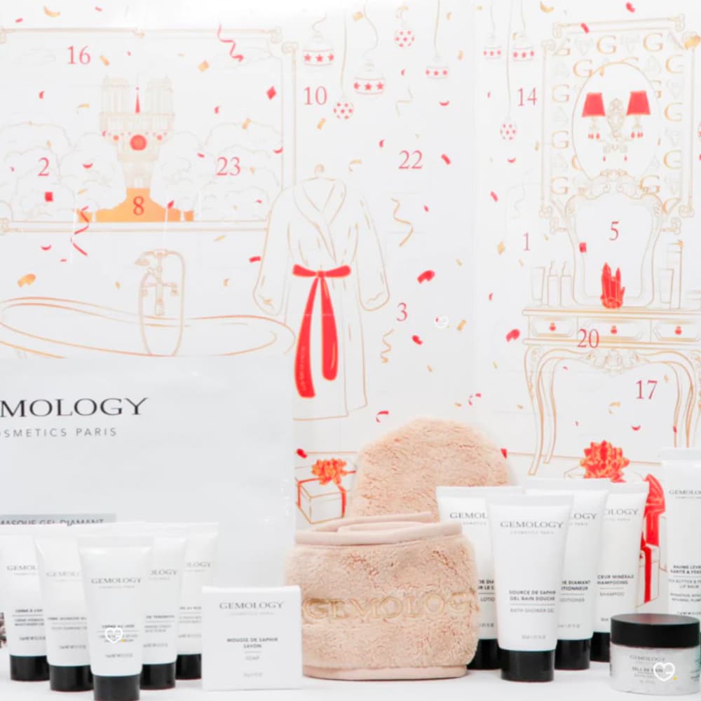 Calendrier de l’Avent Gemology 2025 : Profitez du mois de décembre pour sublimer votre peau avec le calendrier de l’Avent Gemology 2025 et ses merveilles minérales. Un coffret illustrant l’élégance d’une salle de bain parisienne qui en toile de fond célèbre la réouverture de la Cathédrale Notre-Dame et qui en ouvrant son ruban rouge vous fera découvrir 24 produits précieux et efficaces pour une peau sublimée et apaisée. Inspirée du pouvoir des pierres , ce calendrier de l’avent beauté Gemology vous propose pendant 24 jours un rituel beauté apaisant, nourrissant pour démarrer la journée avec sérénité et éloigner le stress . Sérum liftant au Saphir, gommage scintillant au Diamant, élixir revitalisant à la Malachite.. La marque experte en Minéralogy Cosmétique vous invite à (re)découvrir les textures sensorielles et les parfums délicats de ces produits d’exception. L’allié parfait pour faire pétiller votre teint et votre quotidien avant les fêtes. Contenu et valeur du contenu de ce coffret ? Le calendrier de l’Avent Gemology 2025 contient 24 produits pour soins visage et corps dont 2 accessoires pour une valeur totale estimée de 400 euros Parmi les produits phares de ce coffret : Du baume à lèvres hydratant pour vous protéger l’hiver Des sels de bain pour vous détendre dans une ambiance parfumée Une lotion Rubis pour purifier votre peau du visage Un gant microfibre un nettoyage parfait de votre peau Au total, vous découvrirez : 22 produits soins visage et corps (savon, sel de bain, huile..) 2 accessoires bien-être Taille de produits : 4 format vente, 1 produit professionnel, 2 accessoires et 17 produits format voyage => Découvrez le contenu complet du calendrier dans l’onglet CONTENU DETAILLÉ 5 raisons de succomber au calendrier de l’Avent Gemology : Une expérience uniqu e : Découvrez chaque jour l’univers minéral fascinant de Gemology. Saphir, Malachite, Diamant… 24 cases qui révèlent peu à peu leurs secrets beauté pour une routine soins visage d’exception. Des soins joyaux ultra-efficaces : Conçus avec les dernières technologies, les produits Gemology concentrent toute la puissance des pierres précieuses. De quoi faire étinceler votre peau de mille feux avant les fêtes ! Un concentré des best-sellers : Ce calendrier réunit les must-have de la marque, du sérum liftant au gommage sublimateur, pour découvrir ou redécouvrir ses soins iconiques. L’occasion idéale de s’offrir une cure de jouvence complète. Une idée cadeau pour femme : Avec son packaging luxueux et sa sélection exclusive, ce calendrier de l’Avent beauté est une belle idée cadeau à s’offrir ou à offrir. Parfait pour le décompte des beauty addicts ! Un bon rapport qualité-prix imbattable : La valeur de ce calendrier Gemology dépasse les 400€, soit bien plus que son prix de vente. Soit près de 300€ d’économie sans négliger la qualité des produits. Code promotion : Code promo : profitez de -10% sur le calendrier avec le code welcome Cadeau Gemology : 1 cadeau exclusif offert dès 60 euros d’achat (pas besoin de code promo – inclut au panier) Retrouverez ici tous les calendriers de l’avent en promotion Où acheter ce calendrier : Comparer et acheter le calendrier de l’Avent au meilleur prix sur : Gemology Informations pratiques : Date de sortie : Calendrier Gemology est disponible début octobre Expédition : A partir du 15 octobre Compte instagram : @gemologycosmeticsparis Frais de port : Livraison offerte dès 60 euros Echantillon : 3 échantillons offerts à chaque commande