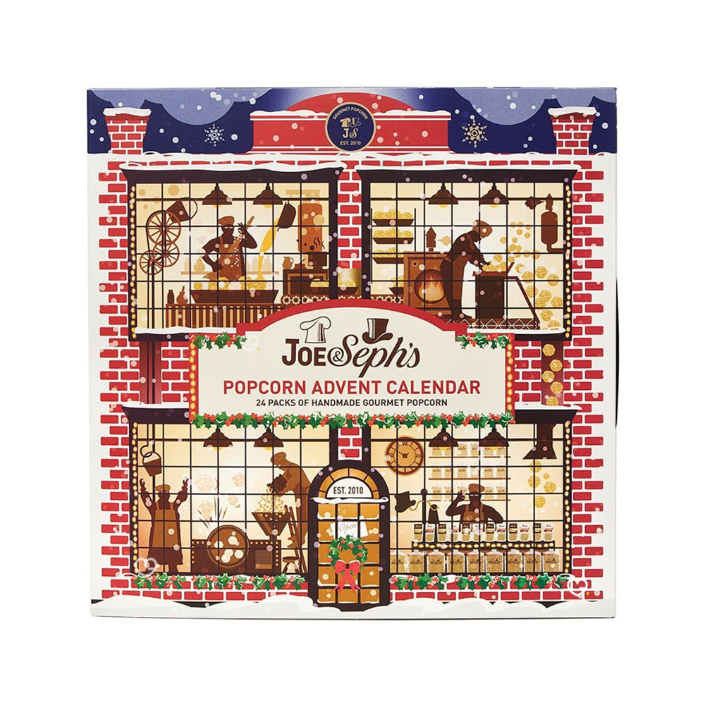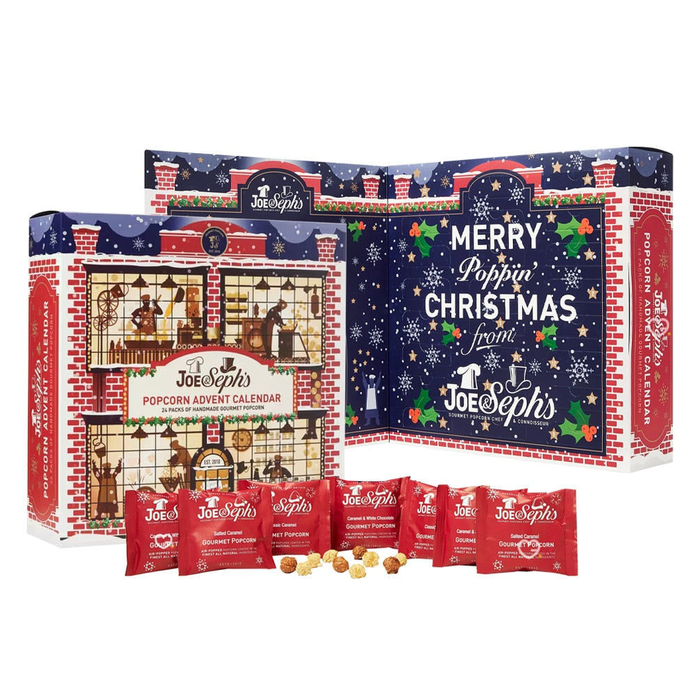 Calendrier de l’avent Pop corn Joe & Seph’s : Entrez dans l’esprit festif et célébrez la fin de l’année 2025 de manière délicieuse, avec le calendrier de l’Avent gourmand rempli de Pop corn ! Avec son design festif et fantaisiste, il contient 175 g de popcorn primé de 19 saveurs différentes ! Ce calendrier de l’Avent s’ouvre comme un livre de contes de Noël géant et représente une scène enneigée des cuisines de Joe’s Popcorn à Noël. Rempli à ras bord avec plus de popcorn que jamais, y compris nos bouchées de popcorn au chocolat au lait Vous y trouverez une joyeuse collection de nos saveurs de pop-corn gourmet les plus populaires, nos favoris de la fête et plusieurs merveilleuses exclusivités. De quoi faire de décembre le moment le plus merveilleux de l’année ! Les saveurs de ce calendrier : Ce calendrier gourmand contient 19 saveurs différentes dont : Popcorns sucrés : spéculoos: Tiramisu; Caramel; Beurre.. Popcorns chocolatés : Caramel & Chocolat Blanc; Chocolat & Menthe; Chocolat Blanc & Framboise .. Popcorns épicés : Épices de Citrouille Popcorns salés Biscuits gourmands : Pomme & Crème 7; roulé à la Cannelle .. => Découvrez le contenu complet du calendrier dans l’onglet CONTENU DETAILLÉ Les points clefs de ce coffret : 24 portes gourmandes vers un Noël magique : Des paquets de popcorn artisanal avec 19 saveurs uniques et créatives à découvrir chaque jour L’alliance parfaite du traditionnel et de l’originalité : produit fun et gourmand qui conserve l’esprit de Noël avec des saveurs festives (pain d’épices, pomme cannelle…) Un design féérique digne des plus beaux contes de Noël : S’ouvre comme un grand livre enchanté avec des graphismes élégants aux couleurs de Noel Une qualité premium pour un plaisir intense : Ingrédients naturels, Sans arômes artificiels, colorants ni conservateurs (Convient aux végétariens et sans gluten) Conviendra à tous les amoureux de popcorn Autre version disponible : calendrier de l’avent PopCorn Shed