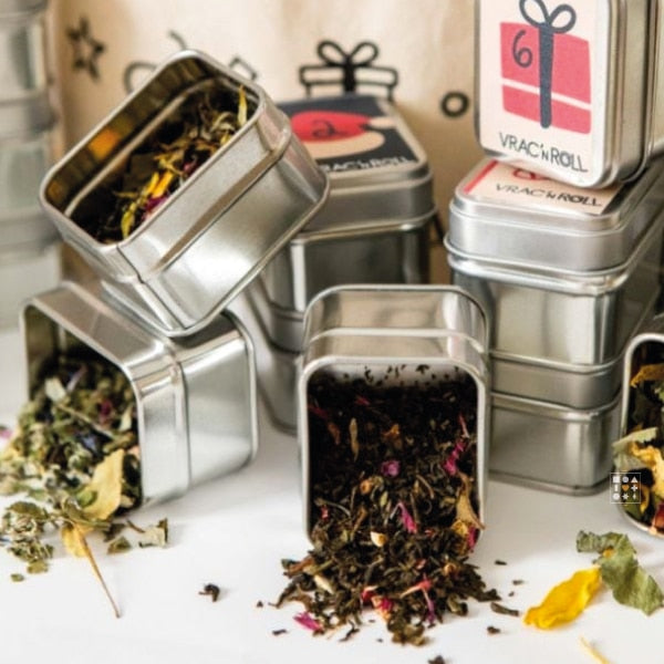 Calendrier de l’Avent Vrac’n Roll – Thés Bio 2025 : On pourra le dénommer calendrier de l’Avent Zero déchet ou Calendrier de l’Avent thé bio; une chose est sûre, c’est que ce coffret fabriqué en France , plus précisément à Lyon, va vous faire patienter de manière écologique et savoureuse . Son pochon en coton et ses 24 boites en fer blanc renferment du thés et des tisanes Bio vous prévoit un moment chaleureux rempli de saveurs , à déguster seul ou à plus. À la fois léger et gourmand, ce calendrier vous permettra de patienter jusqu’aux fêtes avec des gourmandises naturelles et gourmandes, le tout garanties 100 % bio ! Pour résumer ce calendrier : 24 thés et tisanes bio en vrac Certifié bio Fabriqué à Lyon (France) Calendrier à partager (ou pas) entre 2 et 3 personnes (poids total des denrées : Environ 210 g) Produit Zéro Déchet : 100% des matériaux d’emballage sont réutilisables (pochon en coton bio et boites en fer) => Découvrez le contenu complet du calendrier dans l’onglet CONTENU DETAILLÉ Tous les calendriers de l’Avent Vrac’n Roll : Vrac’n Roll propose plusieurs versions de son calendrier de l’Avent Zéro Déchet : Calendrier de l’Avent Vegan Bio Calendrier de l’Avent Thés bio Calendrier de l’Avent Confiserie Bio Code promotion Nature et Découvertes : Aucun code promo n’est disponible sur ce calendrier de l’Avent pour l’instant. Avantage Nature et découvertes : Livraison offerte dès 49 euros d’achat Retrouvez tous les calendriers de l’Avent en promotion . Date de sortie du Calendrier de l’Avent 2025 : Le calendrier de l’Avent est disponible chez Nature et Découvertes
